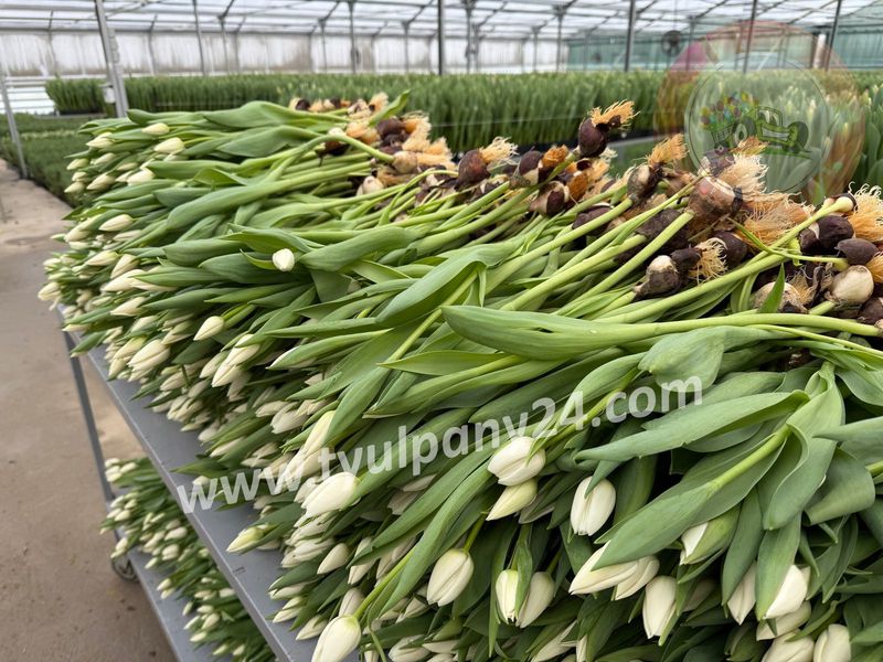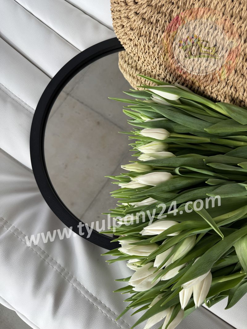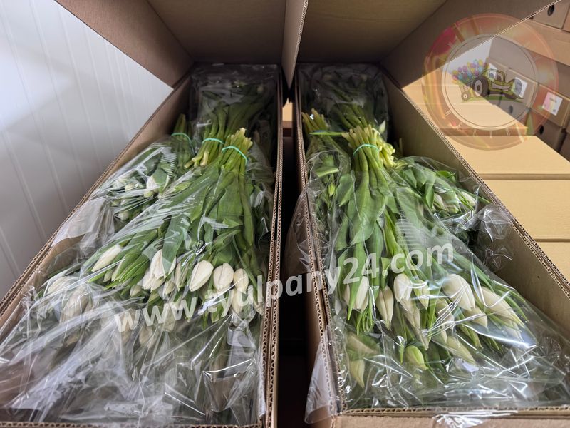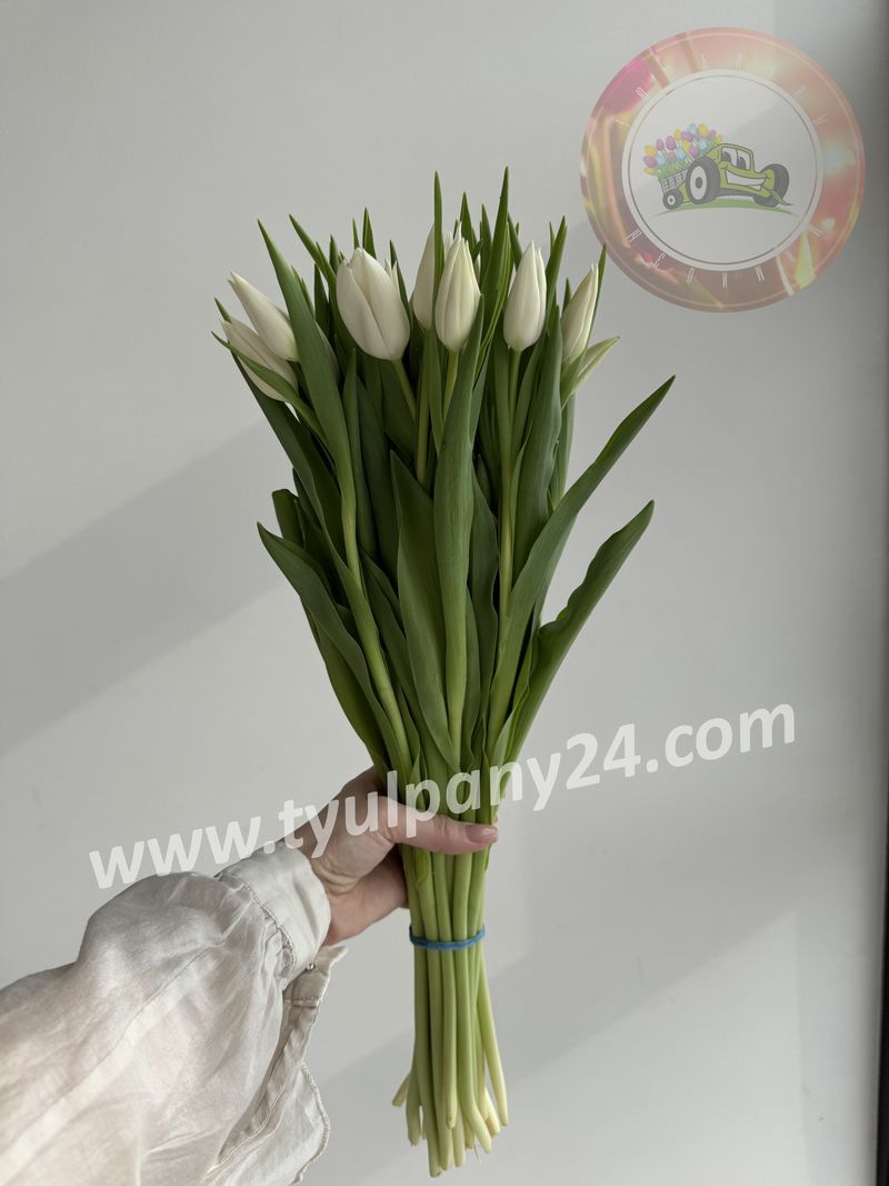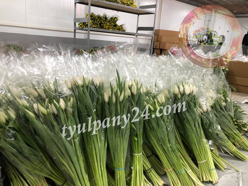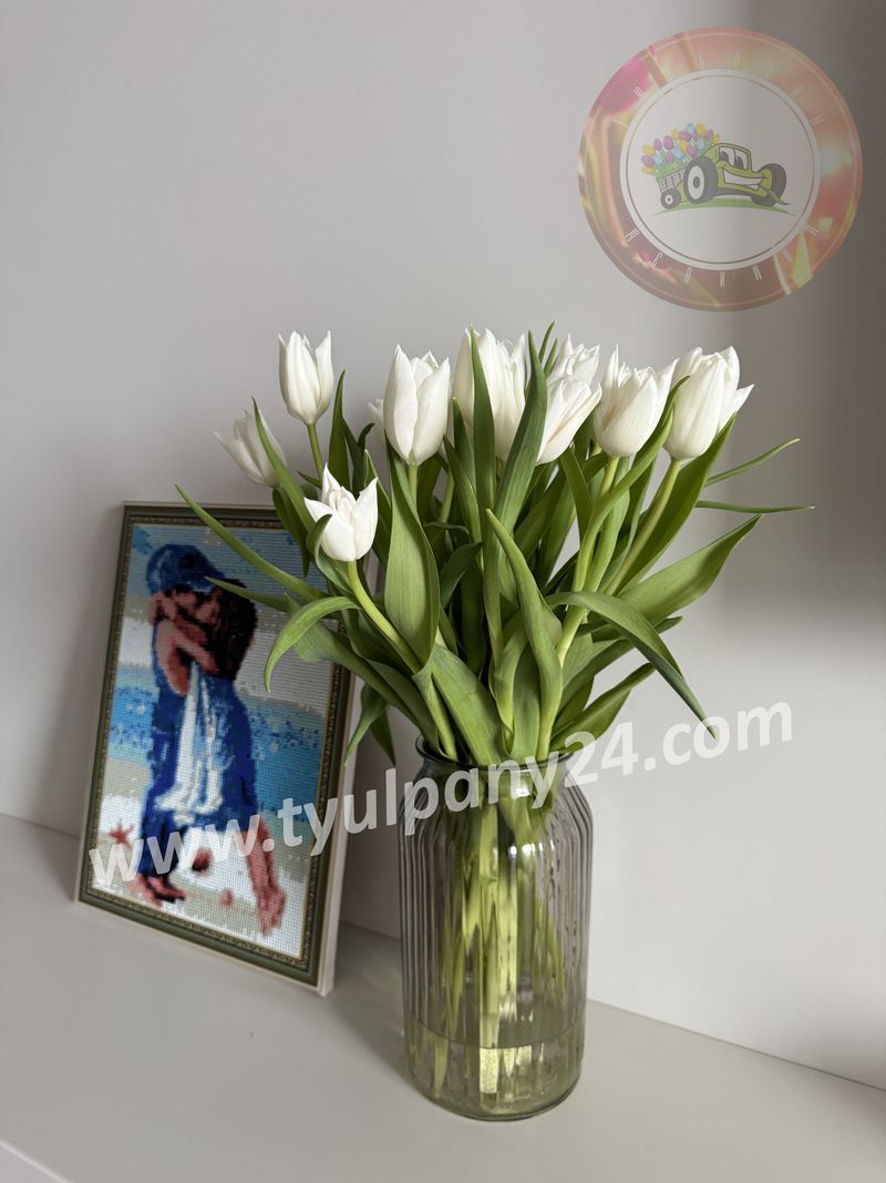Снежно-белые классические тюльпаны. Форма цветка бокаловидная.